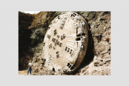 Research material Workers complete drilling of the five-mile long, horseshoe-shaped exploratory tunnel through Yucca Mountain at the proposed high-level nuclear waste repository in Nevada. US Department of Energy 1997 © Yucca Mountain Science Center Pahrump