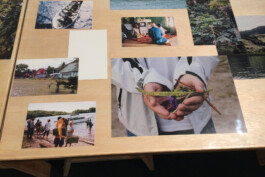 The installation within the exhibition The Oceanic at CCA Singapore also consisted of a table of additional documents and images, some turned to their back.